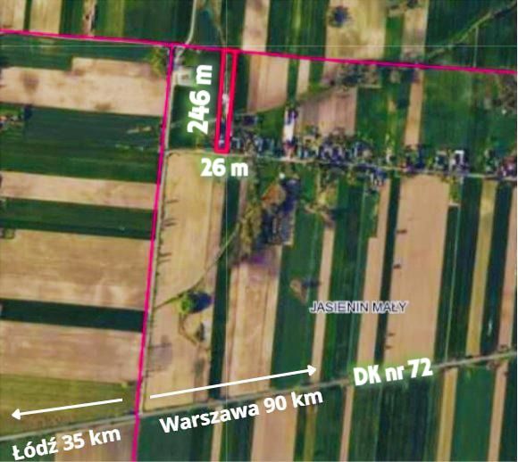 Działka 6400 m² (ok. 26 m x 246 m) - przestronna, z dużym potencjałem inwestycyjnym, ogrodzona i uporządkowana.