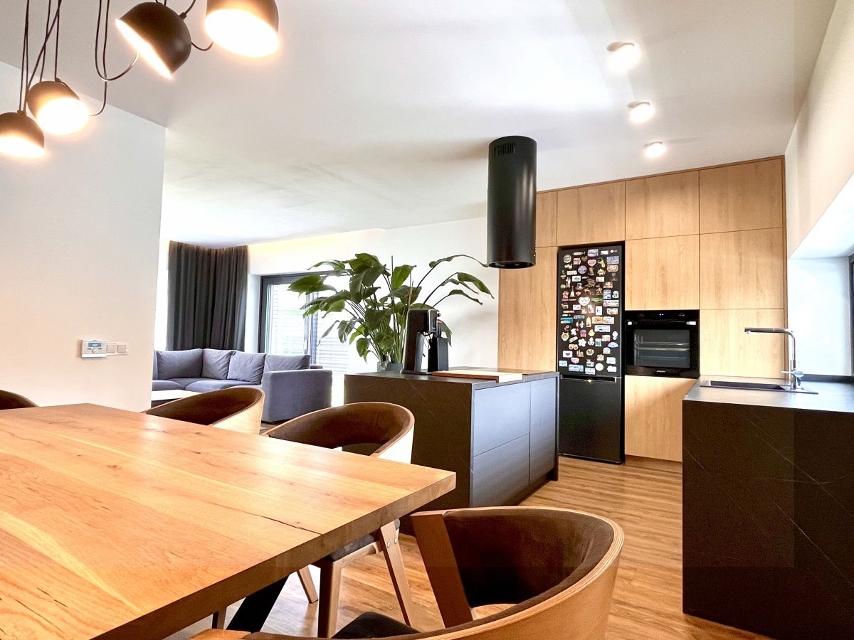 - z przestronnego salonu połączonego z jadalnią i aneksem kuchennym