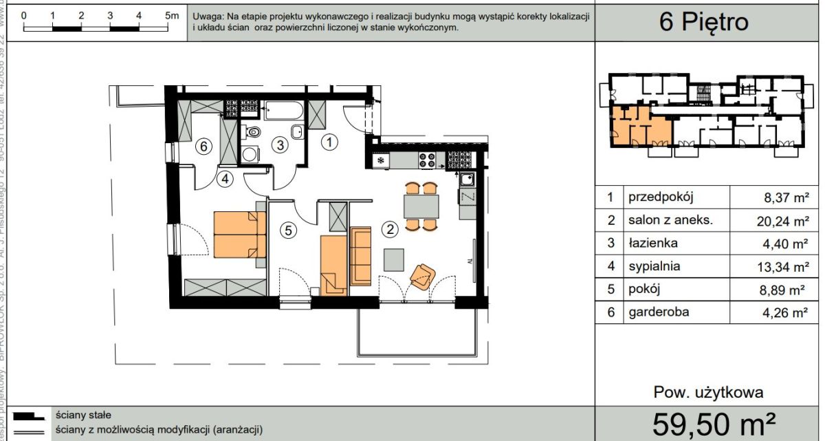 Na sprzedaż przestronne mieszkanie o powierzchni 59,50 m² w stanie deweloperskim, położone na 6. piętrze nowoczesnego budynku z windą, kameralna inwestycja przy ul. Urzędniczej.