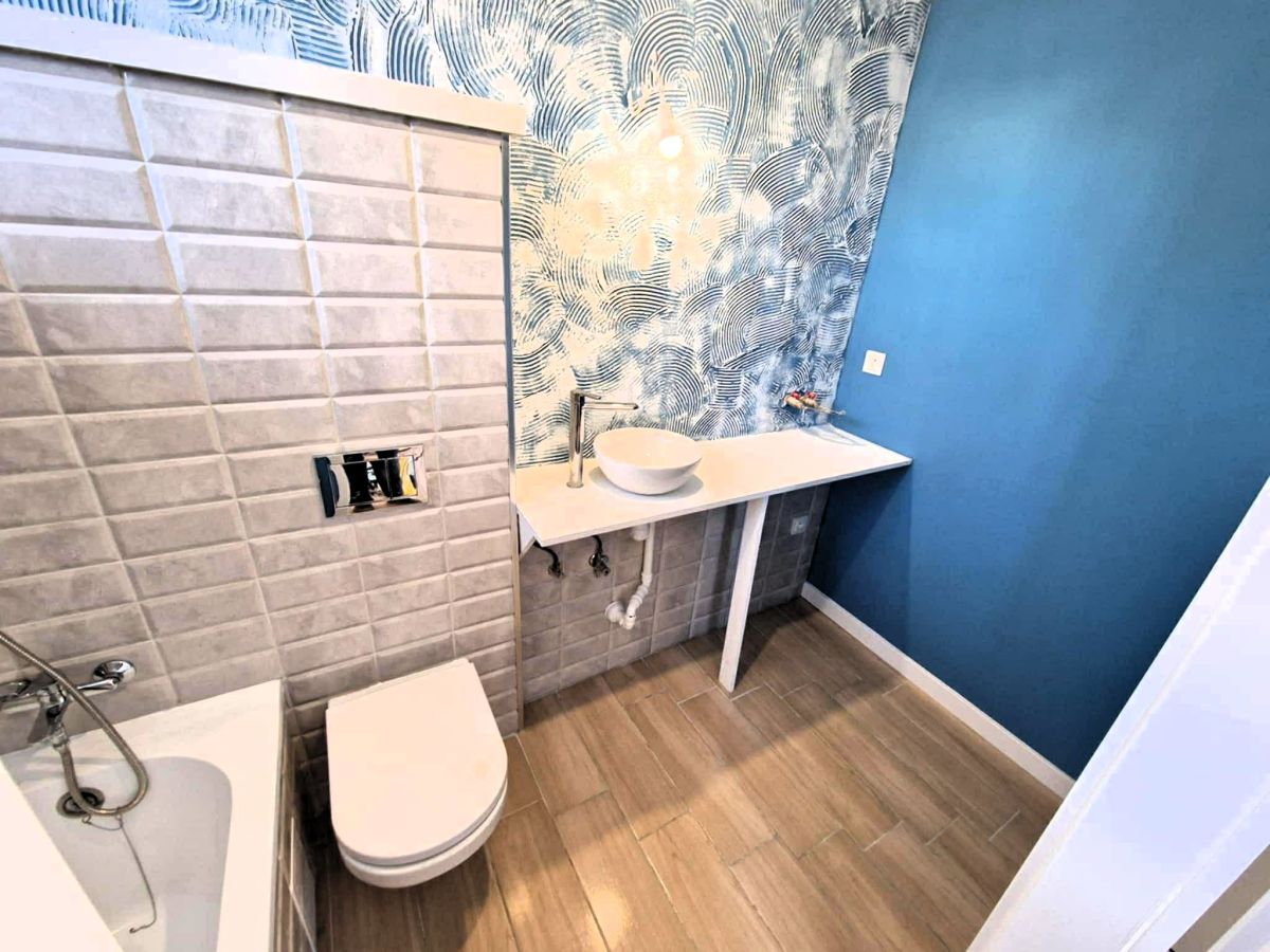 Niewątpliwym atutem nieruchomości jest jakość wykończeń- pomieszczenia są nowoczesne, bardzo widne i przestronne. Na podłogach dekoracyjne panele, bardzo ładnie wykończone łazienki, kuchnia w zabudowie brak jest tylko sprzętów AGD i RTV.